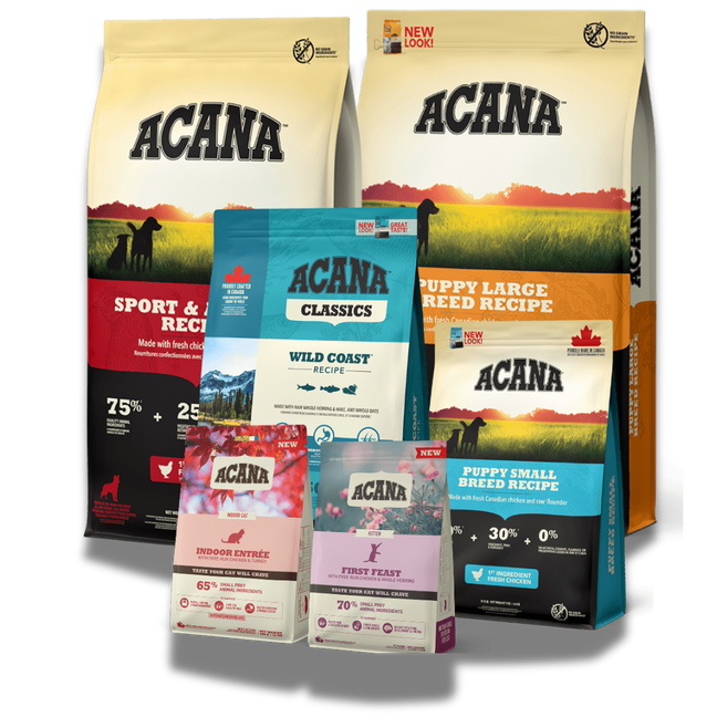 אקאנה מציעה מגוון רחב של מזונות יבשים לכלבים וחתולים, המותאמים לצרכים התזונתיים הייחודיים שלהם.